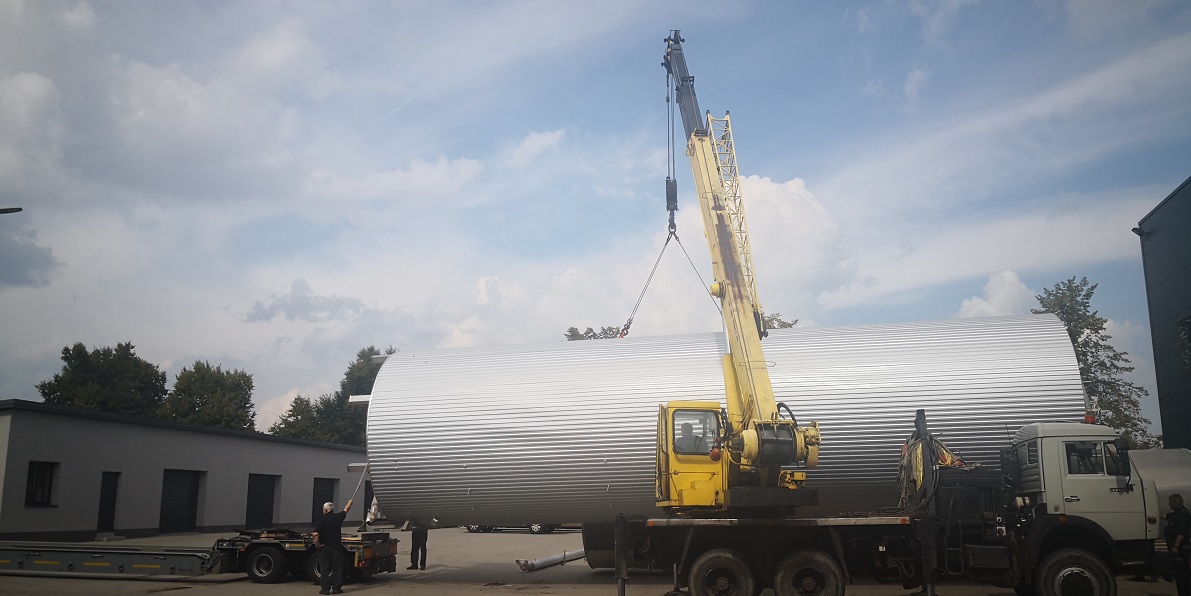 Oto kolejna realizacja firmy KAJA. Wczoraj dwa zbiorniki na tłuszcz o pojemności 154 000 litrów opuściły naszą halę produkcyjną i pojechały do klienta - na Litwę! Nasi pracownicy już są na miejscu i zaczynają montaż urządzeń.